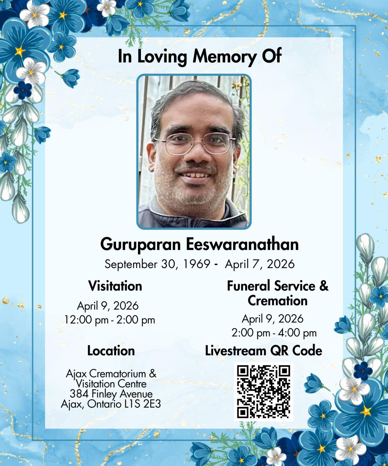 We regret to inform that Mr. Guruparan Eeswaranathan passed away on Tuesday, April 7th, 2026 in Toronto (Canada) at the age of 56.